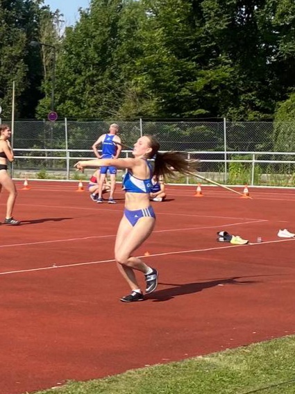 Nach langer Verletzungspause nutzte die 18jährige Lenggrieserin Sophia Gerg die Dachauer Volksfestwettkämpfe zum Comeback auf die Leichtathletik-Bühne. Gleich in vier Disziplinen trat sie in der Frauen-Klasse an und trotzte der Hitze (34°) mit sehr guten Ergebnissen. Vor allem beim Weitsprung erreichte sie mit 4,97m den 7. Platz, dabei kam sie ihrer persönl. Bestleistung (5,07m aus 2022) schon sehr nahe. Bei Kugelstoß und Speerwurf, zum ersten Mal mit den normalen Frauen Gewichten werfend, kam sie gut zurecht. Im Kugelstoß kam sie mit der 4kg-Kugel mit 9,20m in den Endkampf und damit auf den 8. Rang. Im Speerwurf, ihrer Lieblings-Disziplin, flog der 600g-Speer auf 31,85m, dies bedeutete sogar den dritten Platz für Gerg. Beim 100m Sprint zeigte die Ergebnistafel 13,65sec im Vorlauf, damit hätte sie sich für das kleine B-Finale qualifiziert, verzichtete aber um sich auf den zeitgleich stattfindenen Weitsprung zu konzentrieren. Ihre Trainerin Eva Stadler nutzte den Diskuswurf als Test für die Deutschen Senioren Meisterschaften. 18.61m reichten für den 10. Platz in der allgemeinen Frauenklasse.